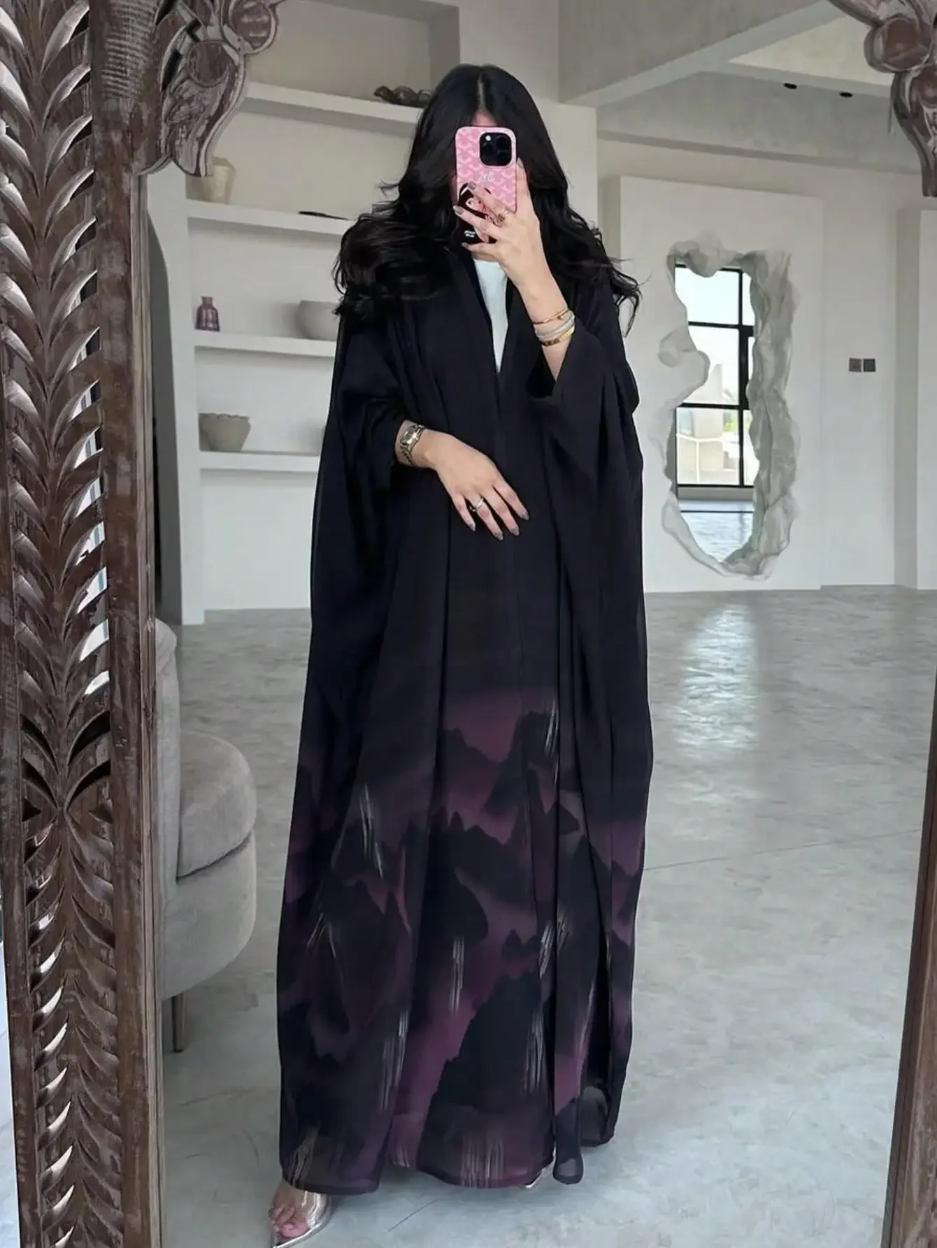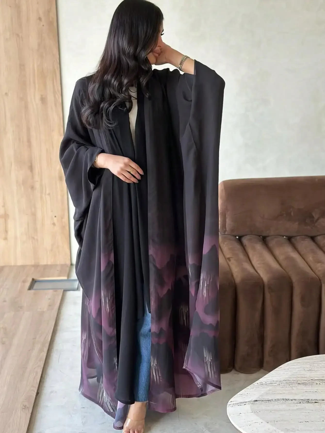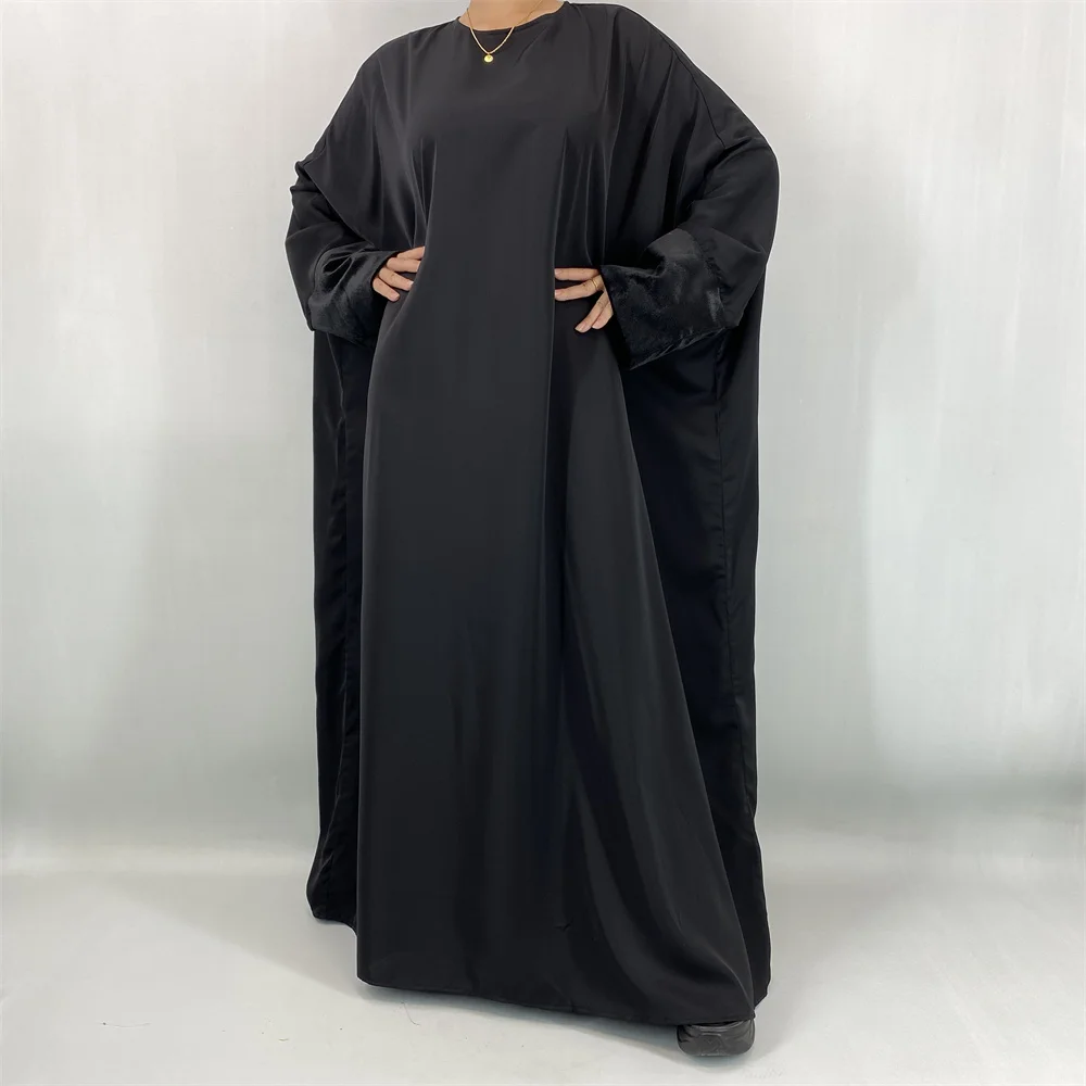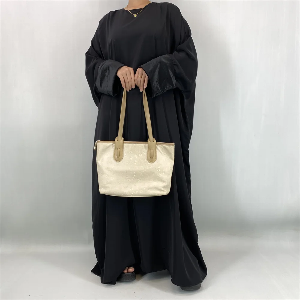 رداء إسلامي أنيق بكمّ خفافيش واسع، مصنوع من قماش ناعم وخفيف، باللون الأسود، بتصميم عصري وأكمام طويلة، يجمع بين الراحة والحشمة بأسلوب مميز.